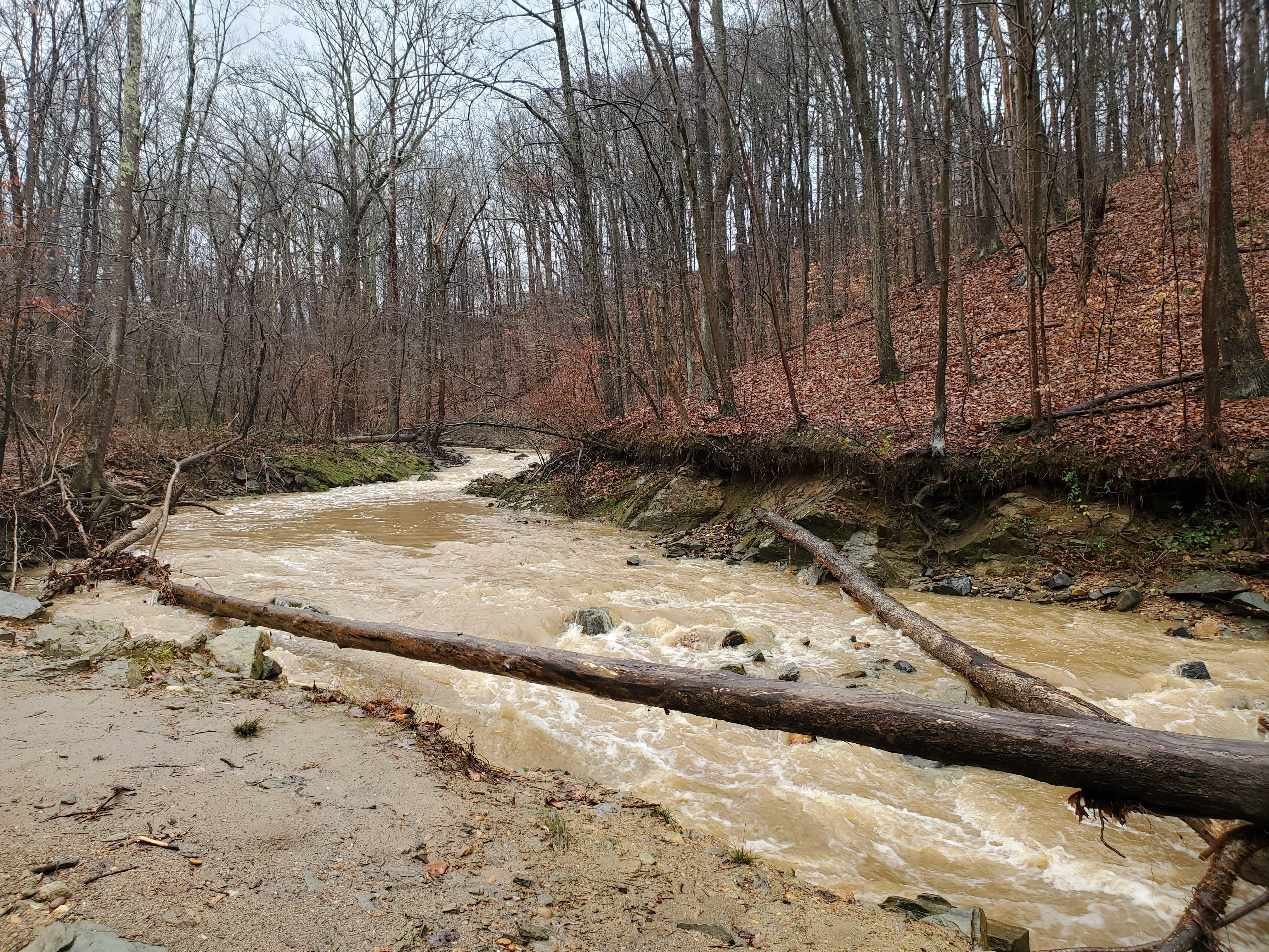 The photos above were taken a few months ago, because when we went yesterday we were surprised to find the extent to which a recent rainfall had affected the water level in Scott’s Run.