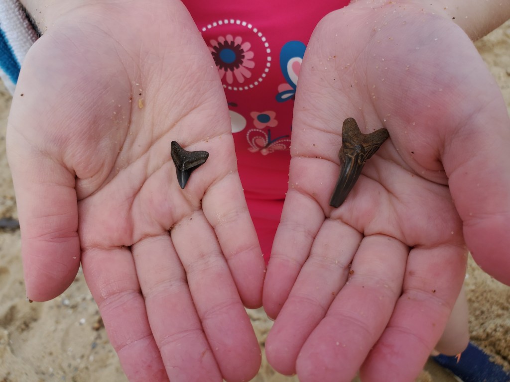 Our most recent visit was just a month later, on a gorgeous, unseasonably warm January day. We were staying at the nearby Easthaven vacation home (which we loved!), and we found ourselves heading down the Big Meadow Trail yet again. We didn’t find any shark teeth, but we had a great time playing on the beach.