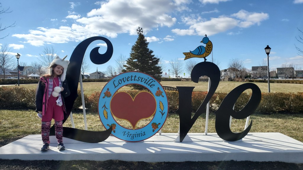 How can you not have a LOVEwork sign when the word LOVE is right there in your town’s name? I’m so glad Lovettsville came through with their own contribution. The flora and fauna depicted in the design pay homage to the town’s rural history, and the pretty lettering adds a whimsical touch. The LOVEwork stands in a park in the center of town, where interpretive signs explain the location’s significance during the Civil War. My husband was intrigued by the wing restaurant located right across the street, which we look forward to checking out in the future.