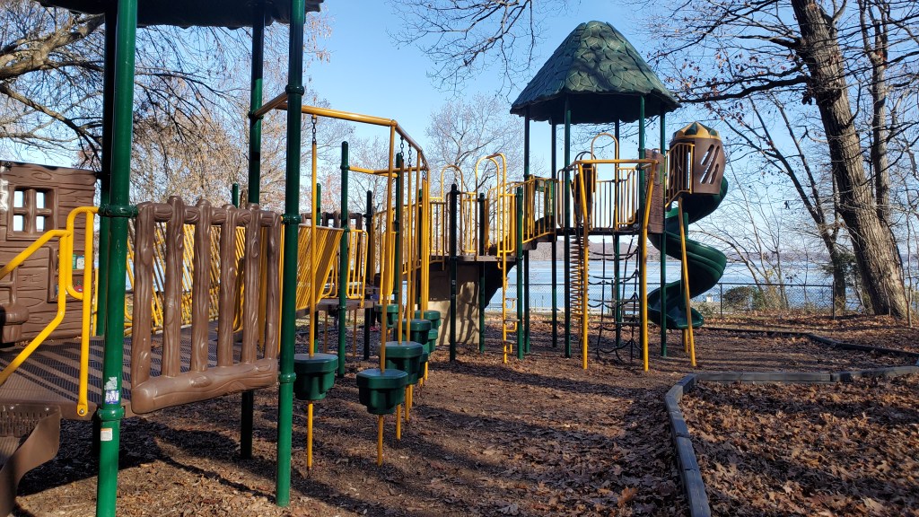 Pohick Bay’s main playground has the best view of any of the other playgrounds on this list. The playground is home to unique equipment, like a metal climbing tunnel and a series of swinging steps. Parents of runners will be relieved to find that the structure is fully gated, and those who prefer a centralized location will be pleased to see the playground, parking, public restrooms, and the waterfront all in the same general area.