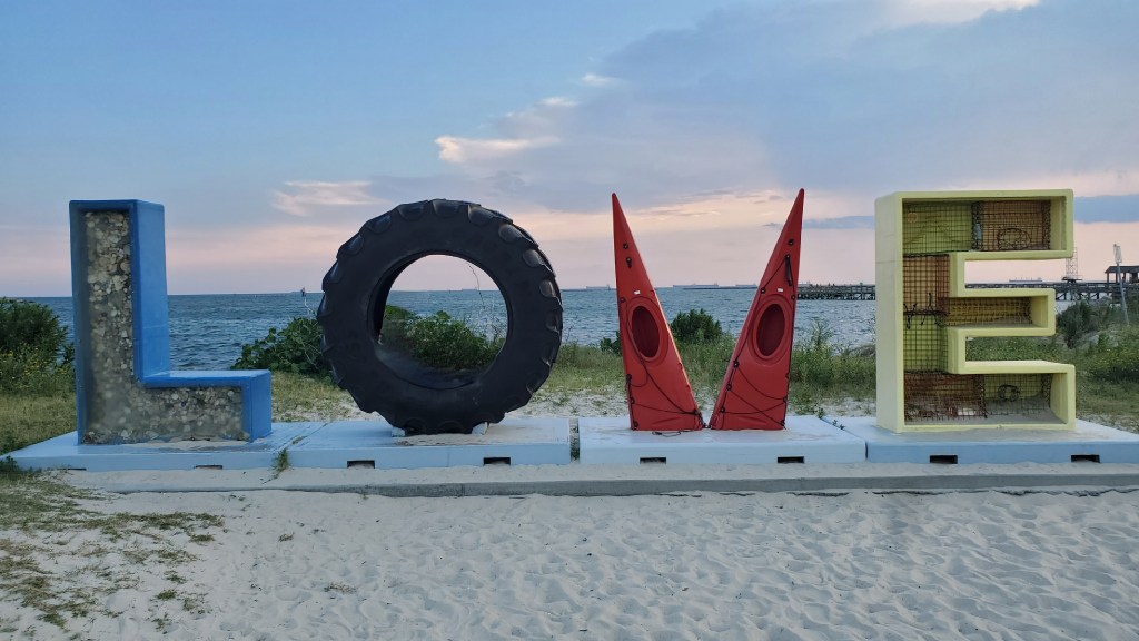 Those who have read my blog before know I love a good LOVE sign. I am always impressed by how well these art installations reflect the history, culture, and people of their respective surroundings. In this respect, the Cape Charles LOVEworks sign does not disappoint: the L represents the sandy beach, the O is a tractor tire that pays homage to the region’s agricultural history, the V highlights kayaking opportunities in the area, and the E is composed of the crab traps that have made the bay famous. If you visit Cape Charles, posing with this unique LOVEworks installation is definitely a must!