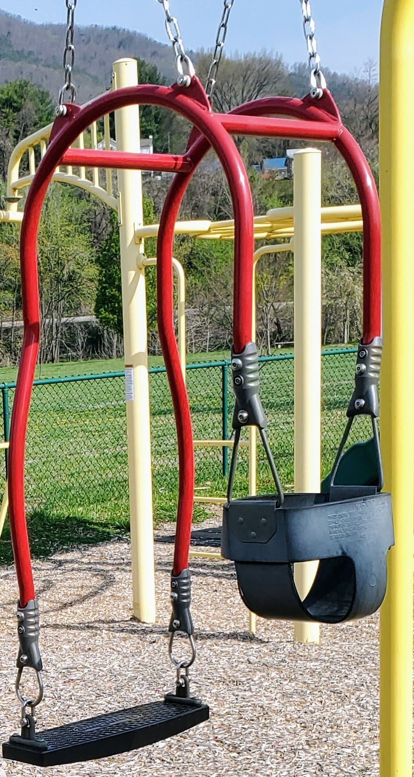 We also walked a few hundred feet through Buchanan Town Park to its playground. Both of my girls adored this play area because of the quirky swing that they could ride together, complete with a view of the mountains.