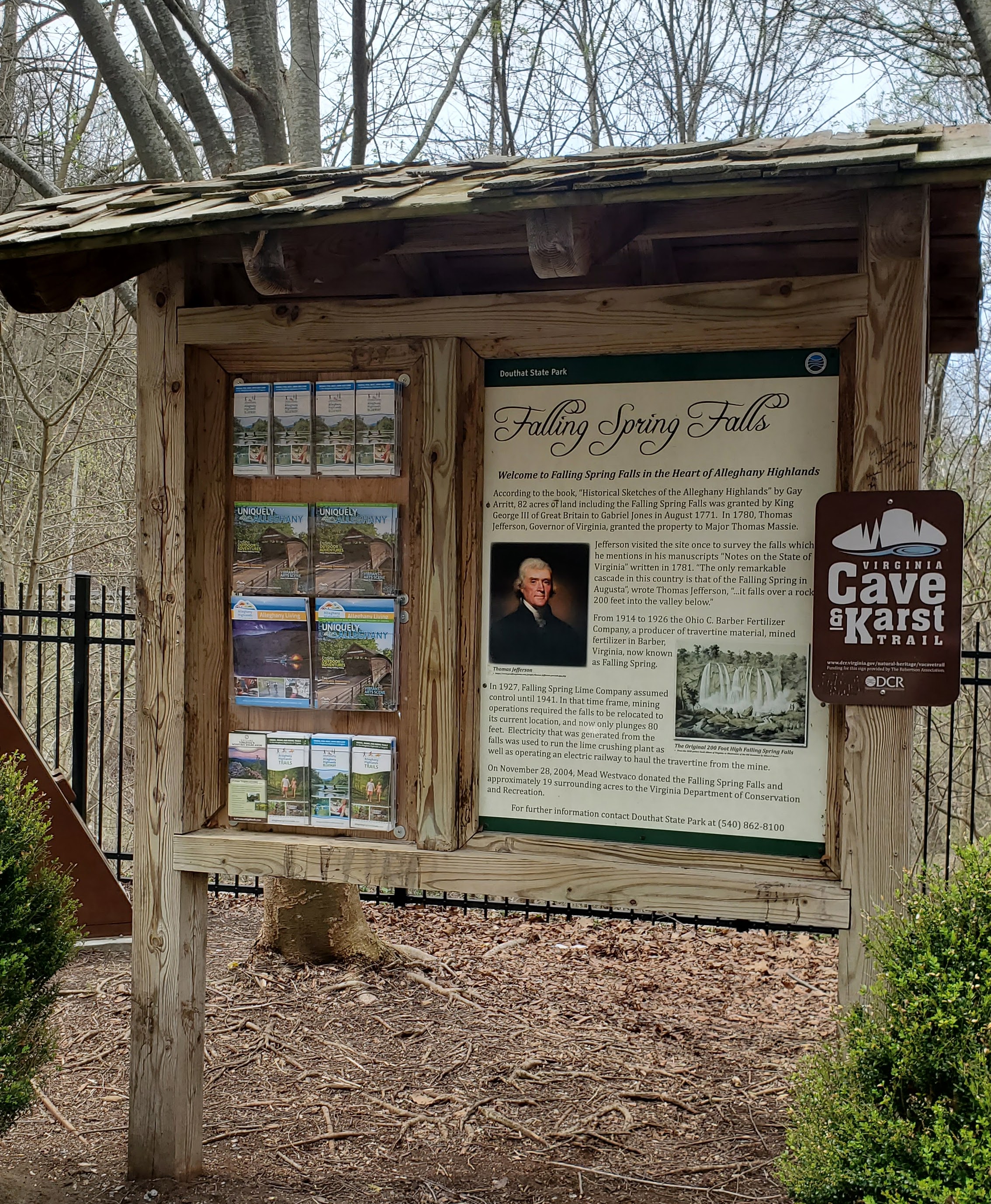 The third official stop in the Chapter 3 portion of the scavenger hunt was Falling Spring Falls. Located in the Alleghany Highlands and nestled several miles up the mountain from downtown Covington, this 80-foot waterfall is a stunning shock when it suddenly comes into view along the side of the road. We easily found parking in the small roadside pull-off and walked down to the overlook. The photos of this place do not do its beauty justice, nor do they capture the waterfall’s magnitude.