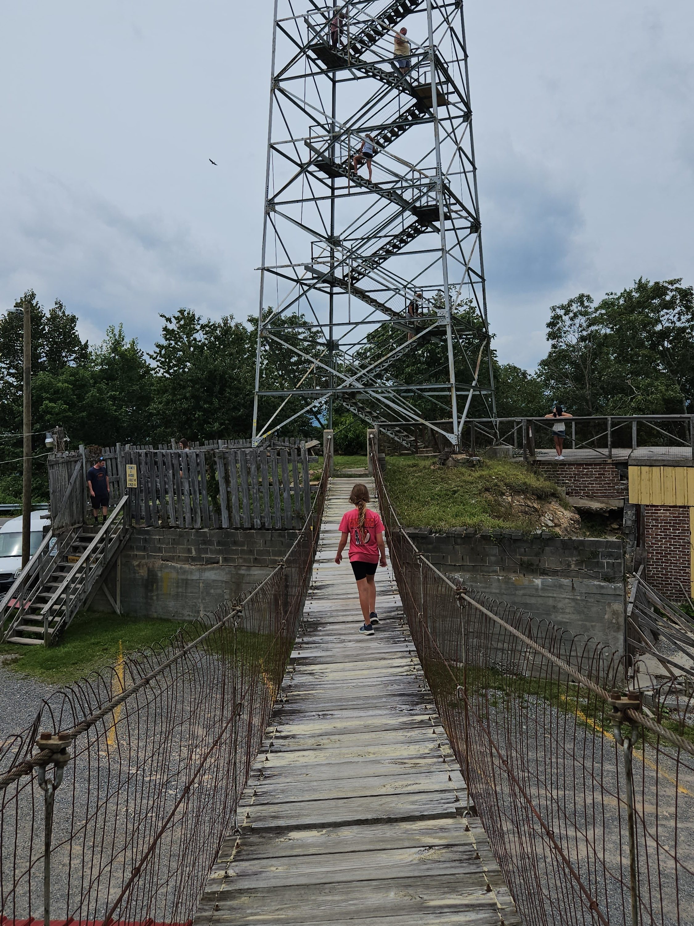 Tickets to climb the tower cost $8 for adults and $5 for kids 3-12 (children under 3 are free). The fee also includes access to a somewhat treacherous swinging bridge near the bottom of the tower.