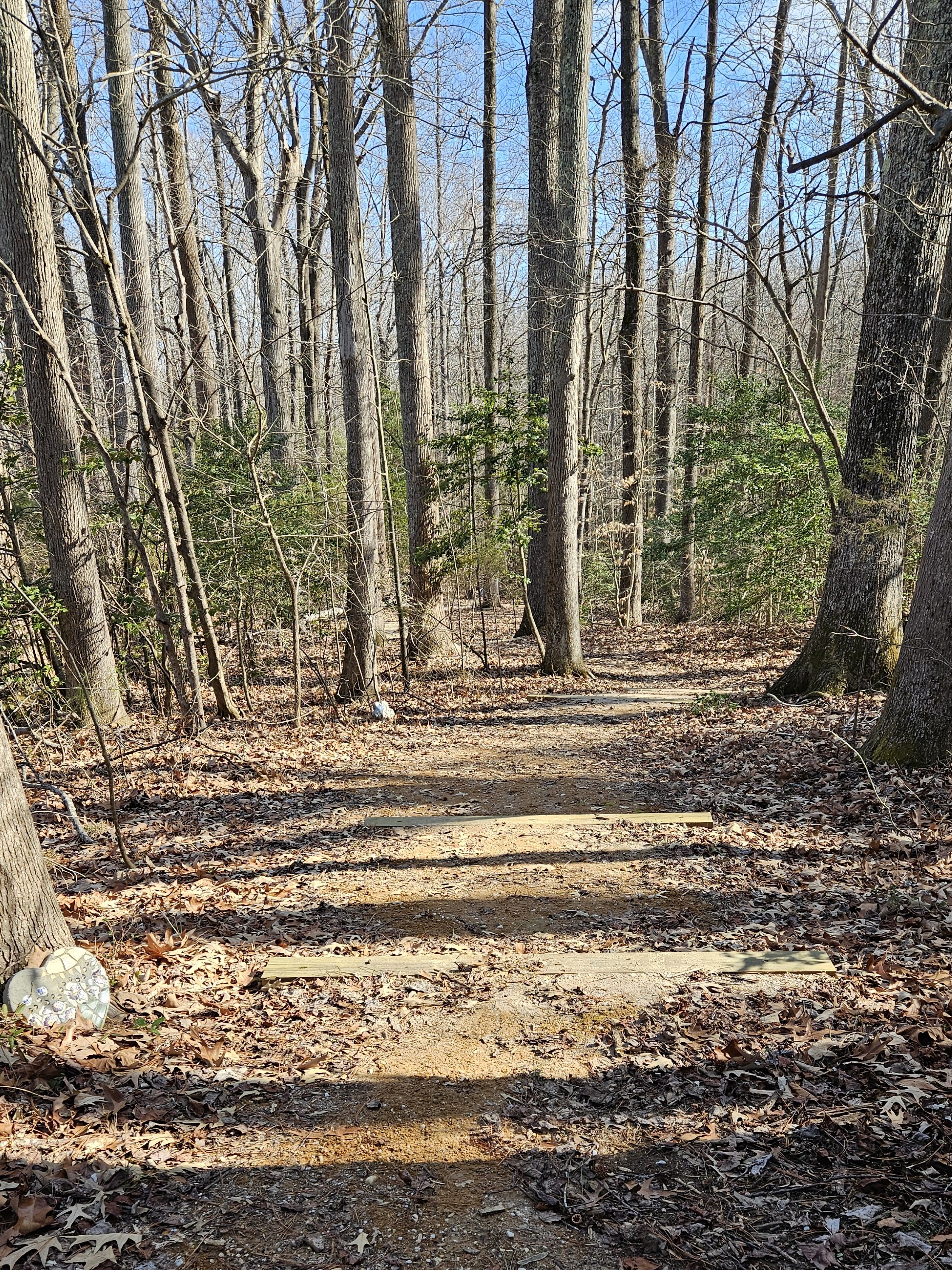 Keep an eye out for the mosaic pavers propped up along the trail.