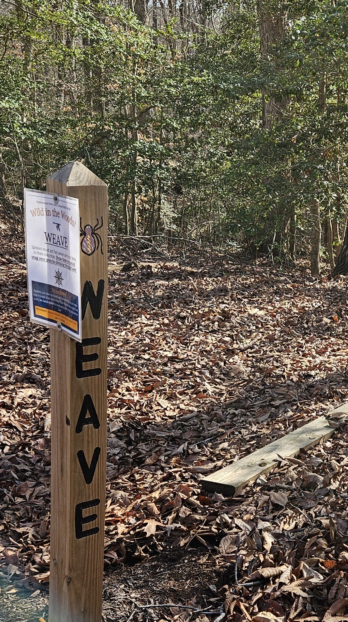 Just behind the kiosk is the first sign advertising Wild in the Woods, our reason for visiting. Wild in the Woods is a nature play space and discovery area nestled in the forest.